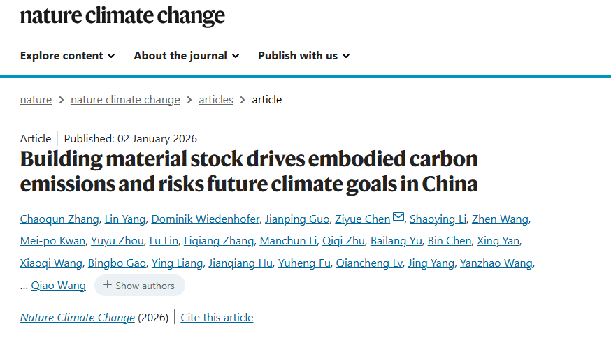 Professor Chen Ziyue's Team from the Faculty of Geographical Science Published a Paper in Nature Climate Change