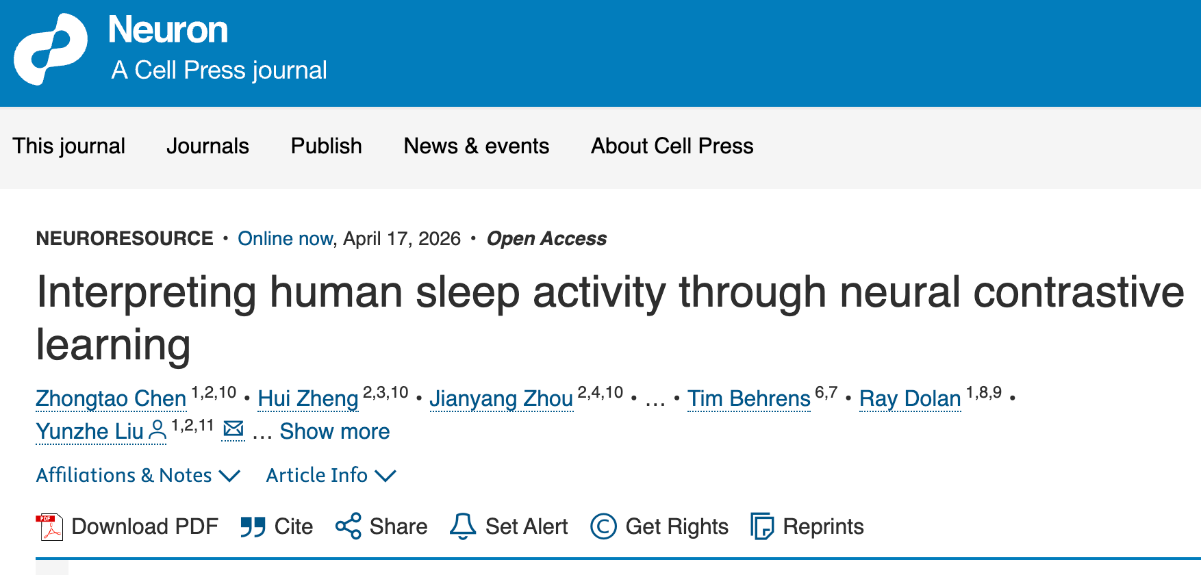 Professor Liu Yunzhe's Research Group Published a Paper in Neuron