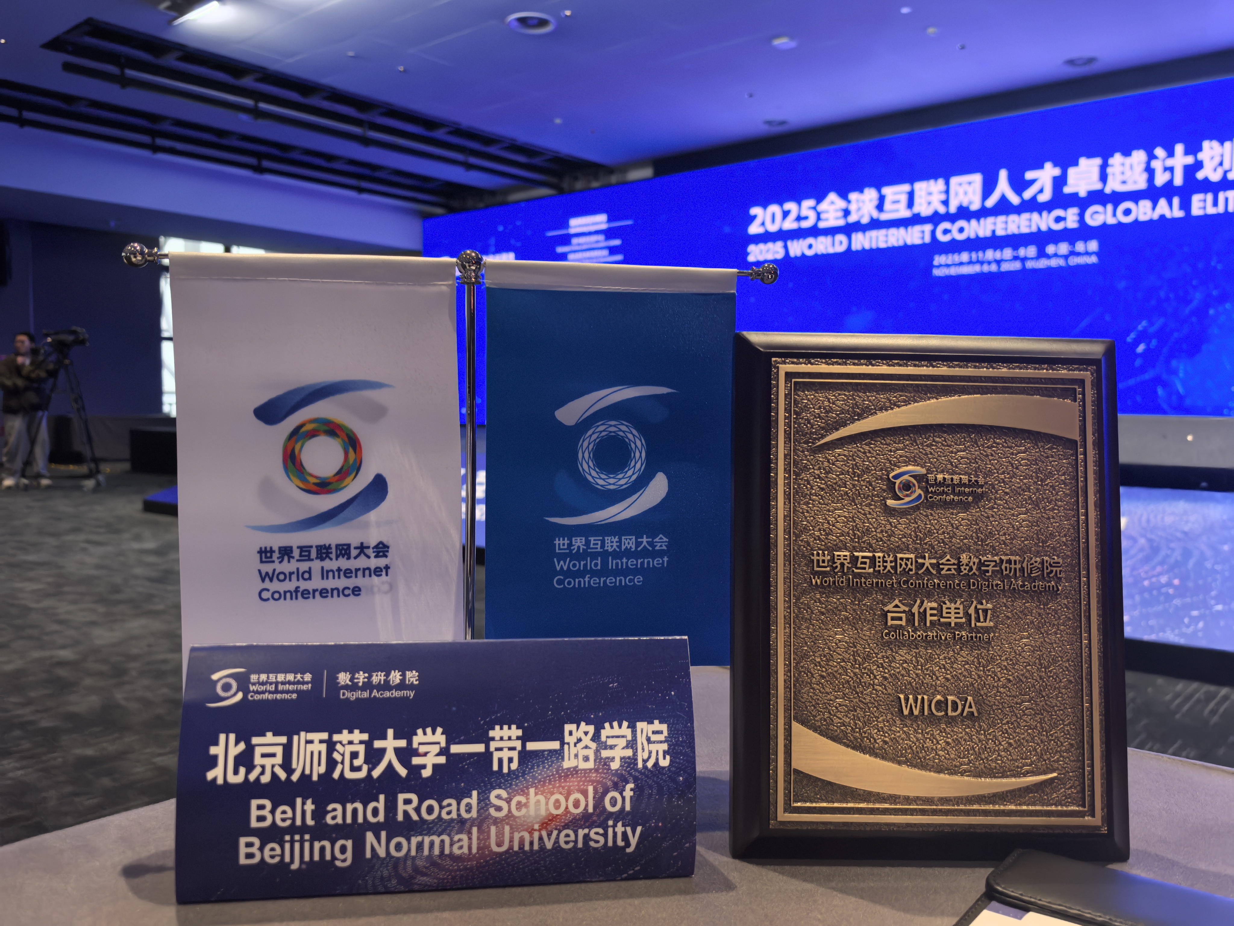 On November 8, the awarding ceremony for the new partner institutions of the World Internet Conference (WIC) Digital Academy was held in Wuzhen, Zhejiang. Beijing Normal University was selected as one of the newly added collaboration partners of the WIC Digital Academy. The Belt and Road School, serving as the liaison unit, was invited to attend the ceremony and received the official plaque. Ren Xianliang, Secretary-General of the World Internet Conference, attended the event and presented the plaques to the new partner institutions.