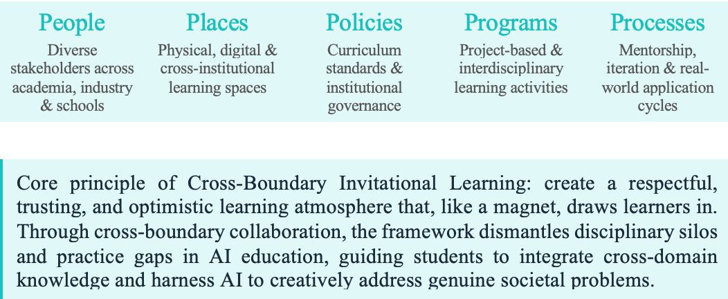Underpinning the Yuanzhuo Initiatives is the "Cross-Boundary Invitational Learning" framework — an original theoretical contribution by the research team grounded in Third-Generation Activity Theory and Invitational Education Theory, crystallised into an integrated 5P systemic model: