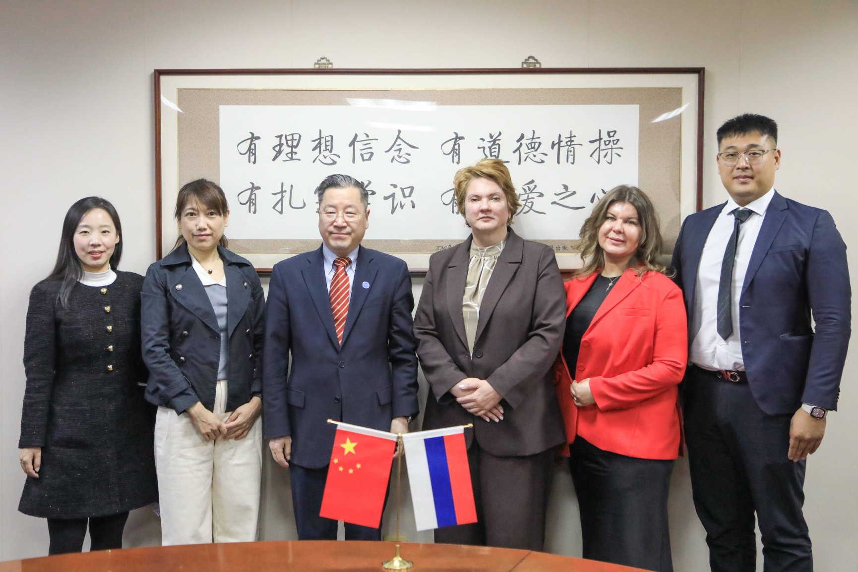 On the afternoon of March 25, a delegation led by Yelena Nikolaevna (Павличева Елена Николаевна), Vice President of the Pushkin State Russian Language Institute in Moscow, Russia, visited Beijing Normal University(BNU). Zhou Zuoyu, Vice Chairman of the Beijing Normal University Council and Director of the UNESCO International Research and Training Centre for Rural Education (INRULED), met with the delegation.
