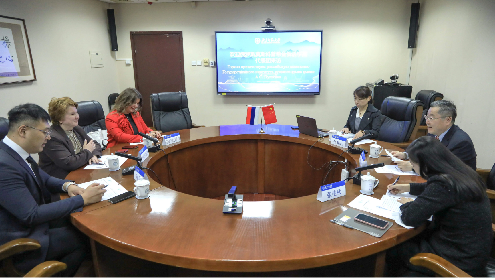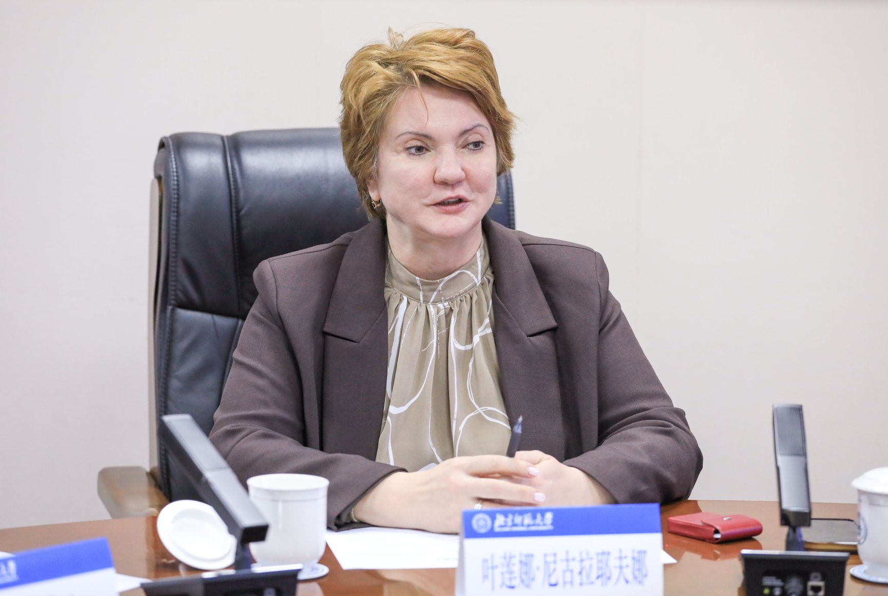 Nikolaevna expressed her appreciation for the warm reception extended by Beijing Normal University and introduced the overall development of the Pushkin State Russian Language Institute. She stated that the Institute looks forward to further exploring joint training programs and collaboration in academic journal development with BNU, and invited BNU to participate in the “Future Scholars” program organized by the Russian government and hosted by the Institute.