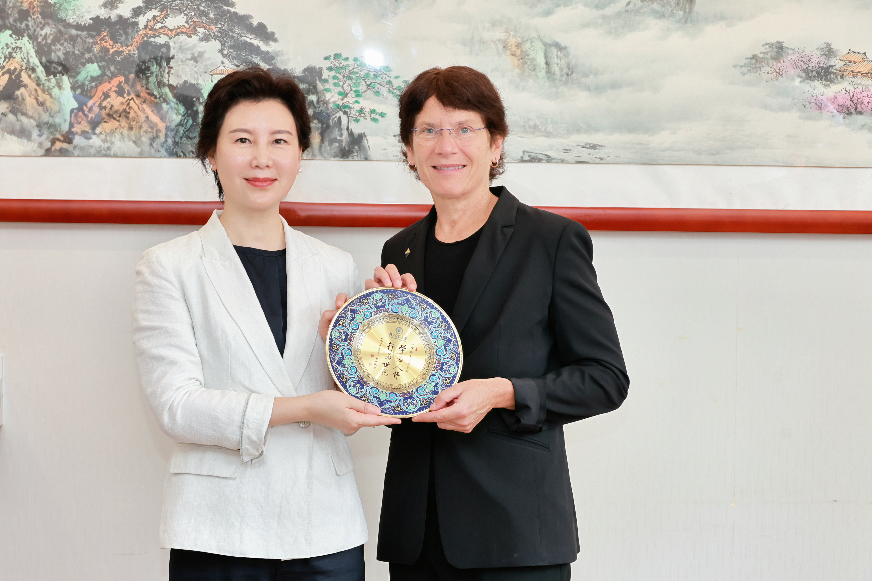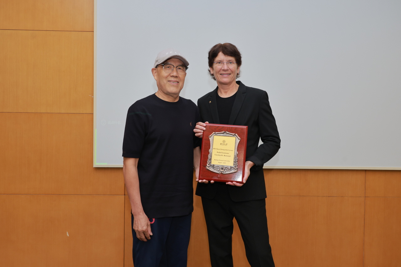 Fang Weihai, on behalf of Beijing Normal University, presented Professor Bertozzi with a souvenir medal, expressing sincere gratitude for her wonderful report and profound enlightenment for scientific research.