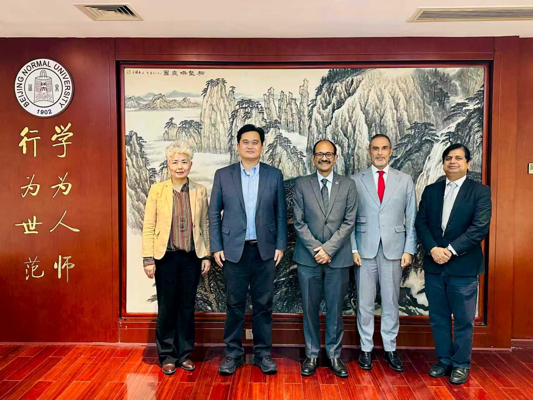 On November 3, Wang Ming, Vice President of Beijing Normal University (BNU), met with Kamal Kishore, Head of the United Nations Office for Disaster Risk Reduction (UNDRR), Marco Toscano-Rivalta, Chief of UNDRR Regional Office for Asia and the Pacific (ROAP) and Rahul Sengupta, Programme Management Officer of UNDRR ROAP. The two sides engaged in in-depth discussions about collaborating to promote disaster risk reduction (DRR) research and capacity building. Yang Saini, Executive Director of Integrated Research on Disaster Risk (IRDR), attended the meeting.