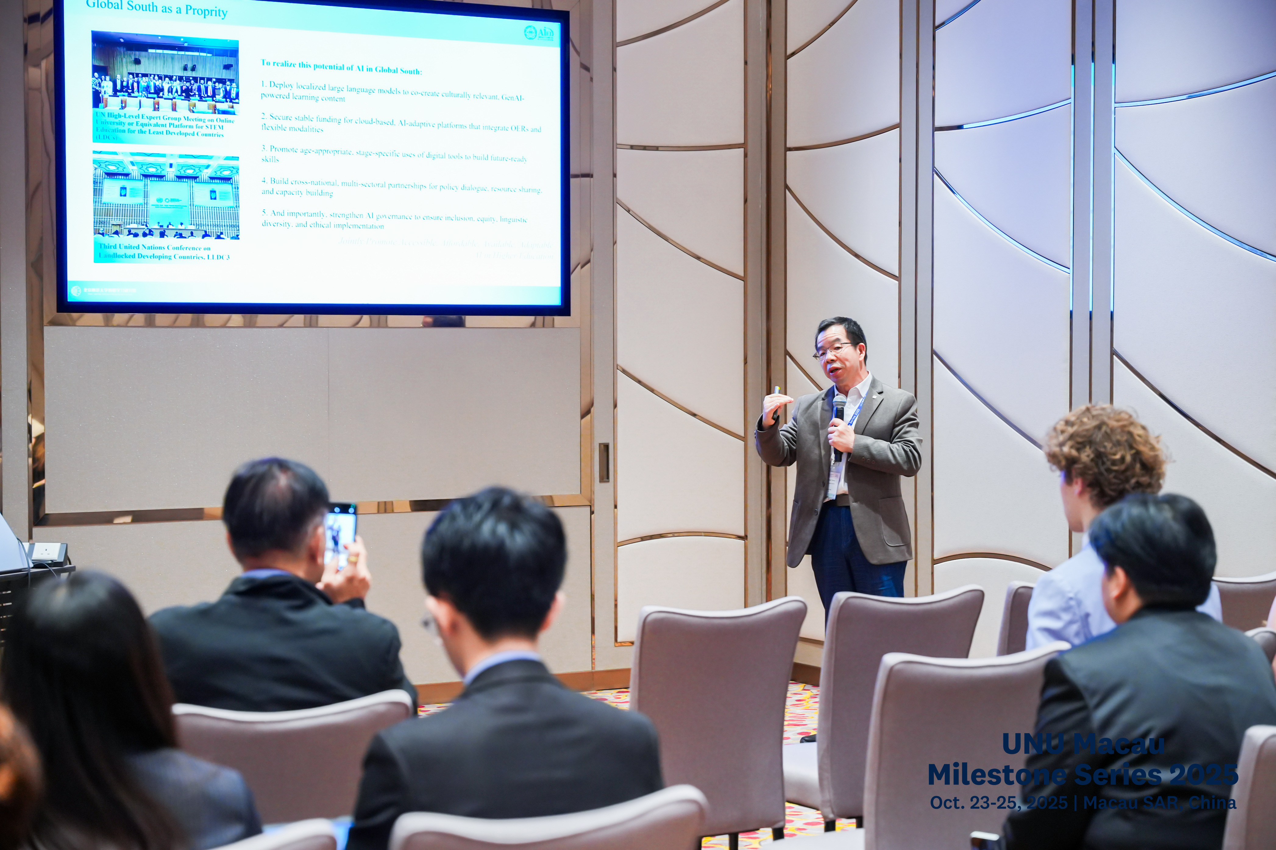 To mark the 80th anniversary of the United Nations and the 50th anniversary of the United Nations University (UNU), the UNU Macau hosted the "UNU Macau AI Conference" on October 24 at the Galaxy International Convention Center in Macau. Under the theme "AI for Humanity: Building an Equitable Digital Future," the conference brought together over 500 experts, scholars, government officials, representatives from international organizations, private sector, and students from more than 30 countries to exchange views on harnessing AI for human well-being. The event aimed to advance concrete actions toward the UN Pact for the Future and the Global Digital Compact, fostering a human-centered and inclusive digital future.
