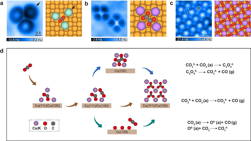 Recently, the research group led by Guo Jing from the School of Chemistry published their research results in Nature Communications under the title "Visualizing alkali metal aggregation-induced coordination in CO2 activation on copper" [Nature Communications 16, 9463 (2025)].