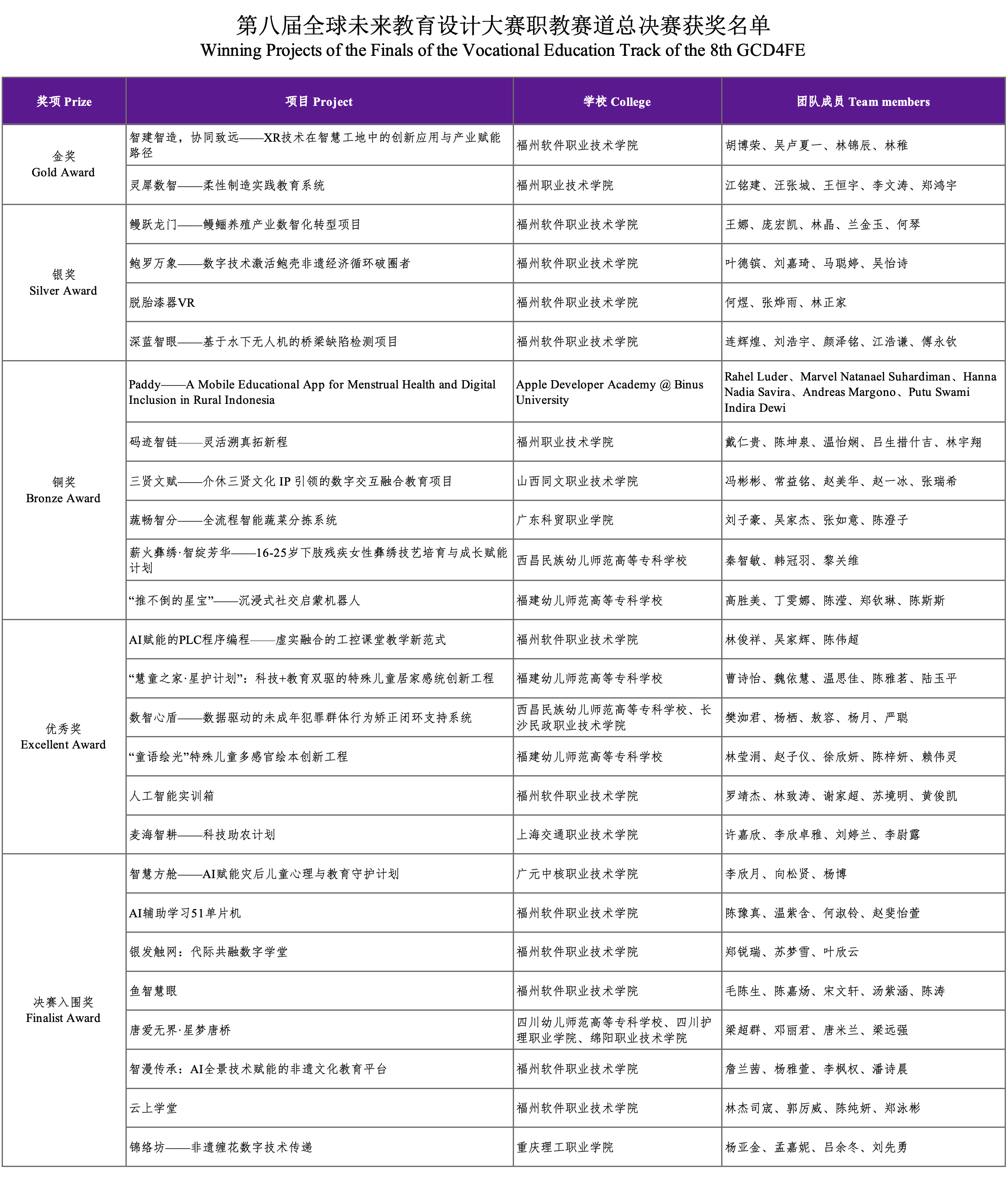 Envisioning the Future with Intelligence, Cultivating Skilled Talent through Innovation: Finals of the Vocational Education Track of the 8th Global Competition on Design for Future Education Held in Fuzhou